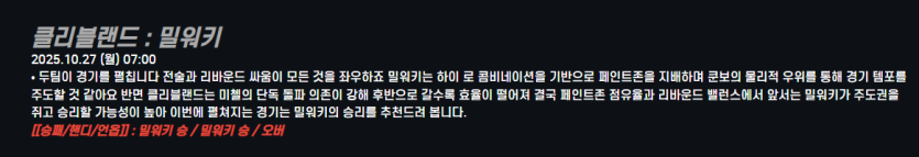 클리블랜드 : 밀워키
