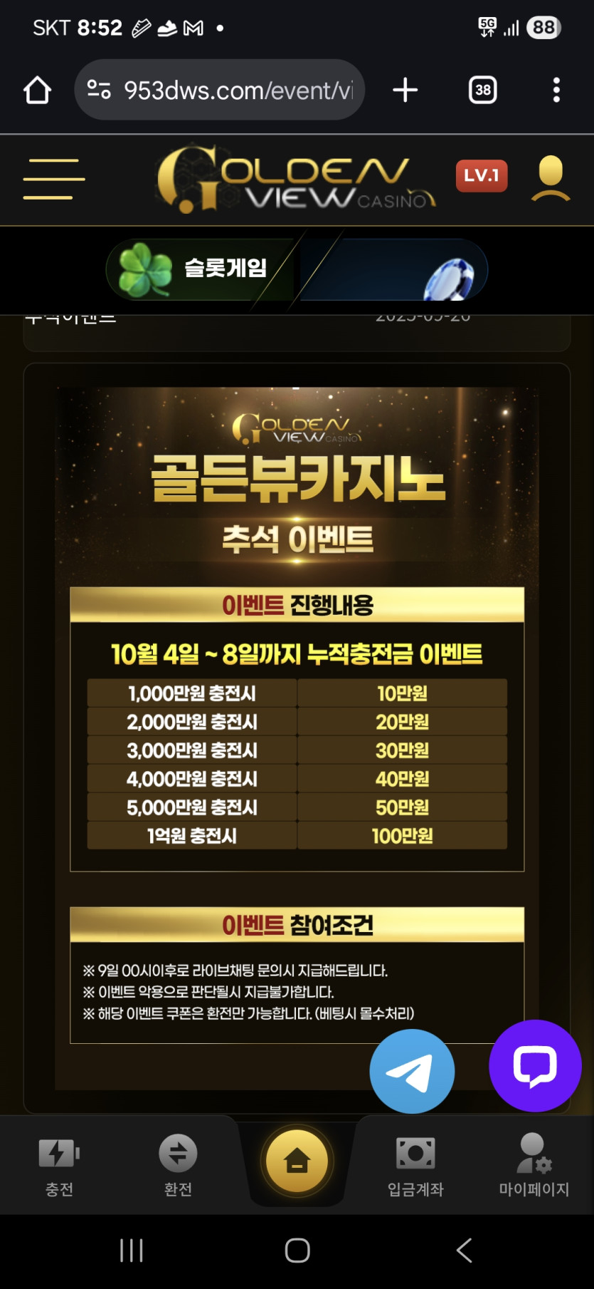 자자 이용하는 사이트인데 입출금 빠르고 추석이라고 이벤트까지 다양하게 하고 쿠폰도 엄청 잘 챙겨줘서 매번 이용하고 있어요! 추석에 다들 많이 벌어서 가시길 바랍니다.