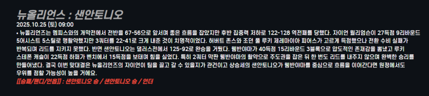 뉴올리언스 : 샌안토니오