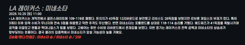 LA 레이커스 : 미네소타