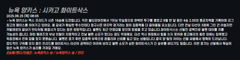 뉴욕 양키스 : 시카고 화이트삭스