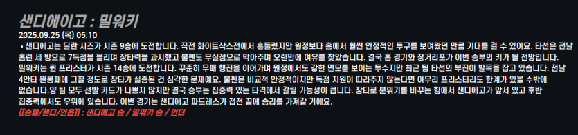 샌디에이고 : 밀워키