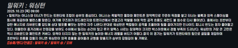 밀워키 : 워싱턴