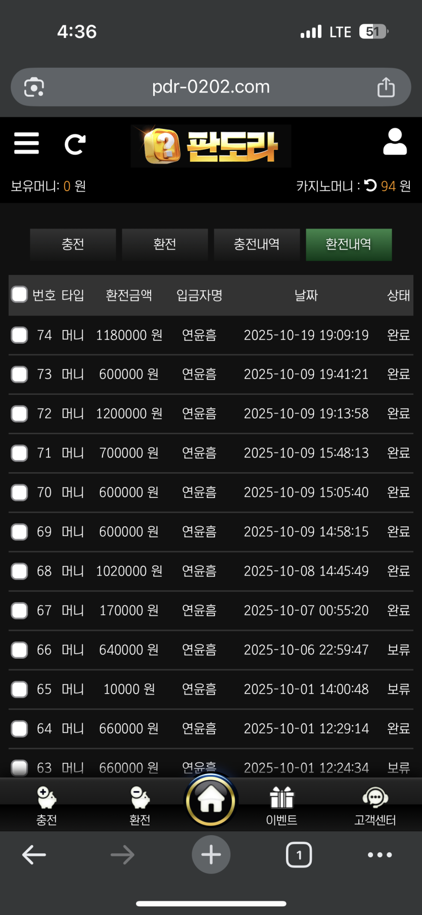 롤링100퍼? 찾기힘들고 환전할때 컴플레인거는사이트가 많지만, 팡도라는 환전할때 컴플레인 ?그런거없습니다!