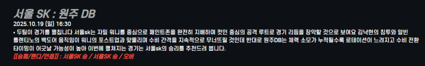 서울 SK : 원주 DB
