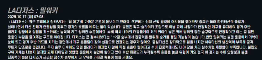 LA다저스 : 밀워키
