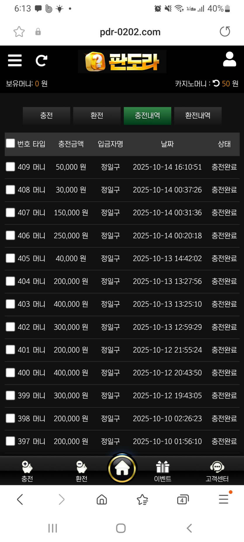 카지노 슬롯 미니게임 스포츠 전부 있으며 많은 이벤트와 안전한 환전으로 가입 후 2년쨔 꾸준하개 쓰고있는 곳입니더 한번 둘러보시고 사댜 맞춰보시길 바랍니다