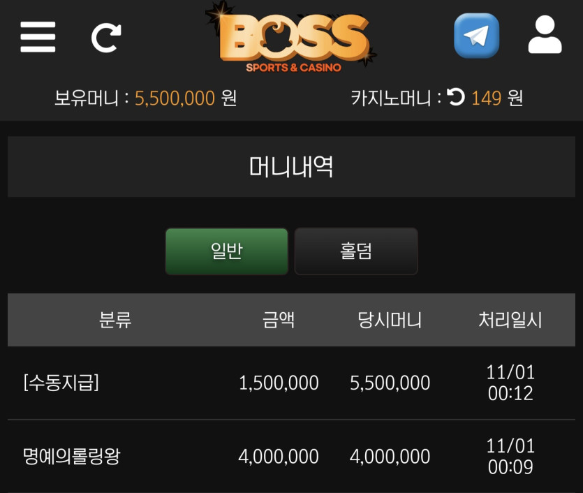 회원 여러분 타사이트 이용해 환전대기시간 혹은 먹튀당하지마시고 보스 많이애용하십쇼!!!