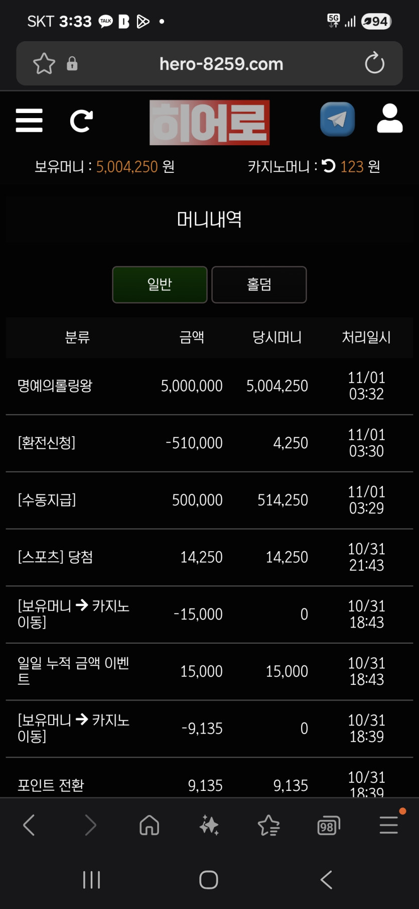 안녕하세요 안전하고 충환전 빠르고 다양한 이벤트 진행하는 히어로 놀이터 추천드립니다 이번의 롤링왕 이벤트 4위 당첨하여 사진과 같이 500도 지급받고 무사고에 직원분들도 친절하십니다 강추!!