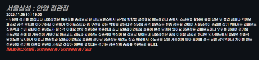 서울삼성 : 안양 정관장