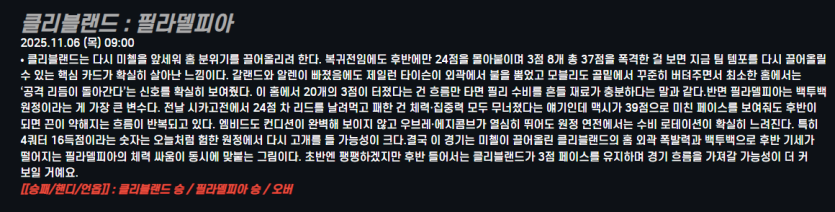 클리블랜드 : 필라델피아