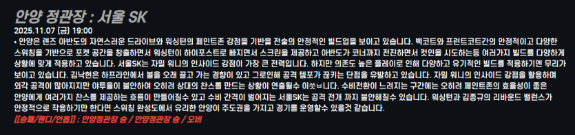 안양 정관장 : 서울 SK