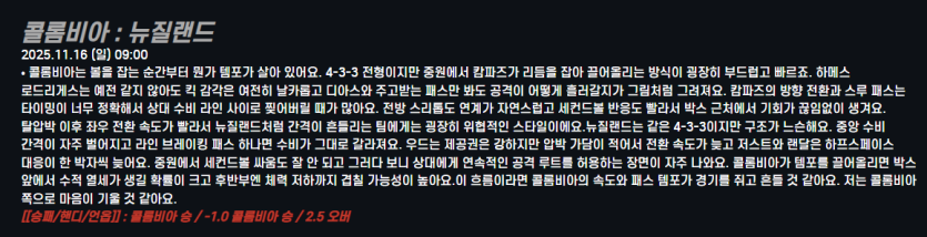 콜롬비아 : 뉴질랜드