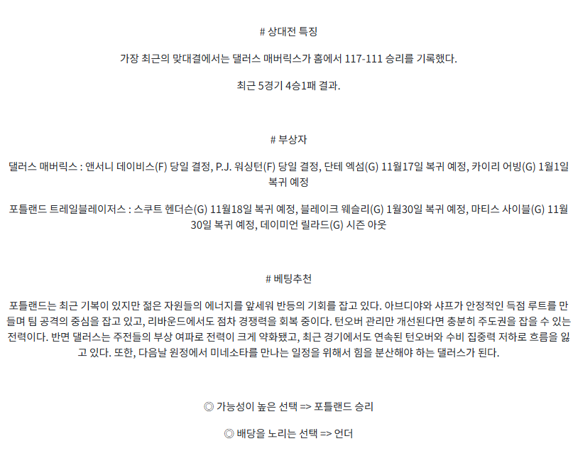 댈러스 매버릭스 : 포틀랜드 트레일블레이저