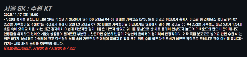 서울 SK : 수원 KT