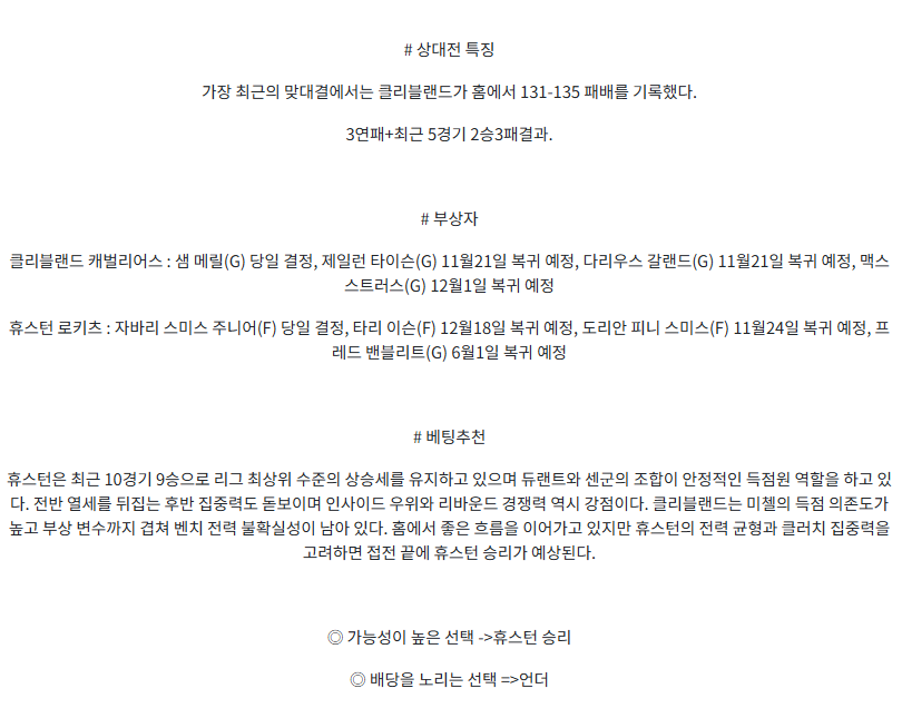 클리블랜드 캐벌리어스 : 휴스턴 로켓츠