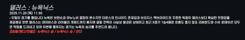 댈러스 : 뉴욕닉스