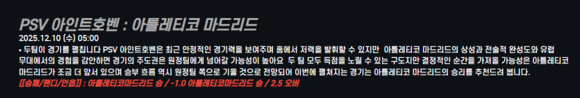 PSV 아인트호벤 : 아틀레티코 마드리드