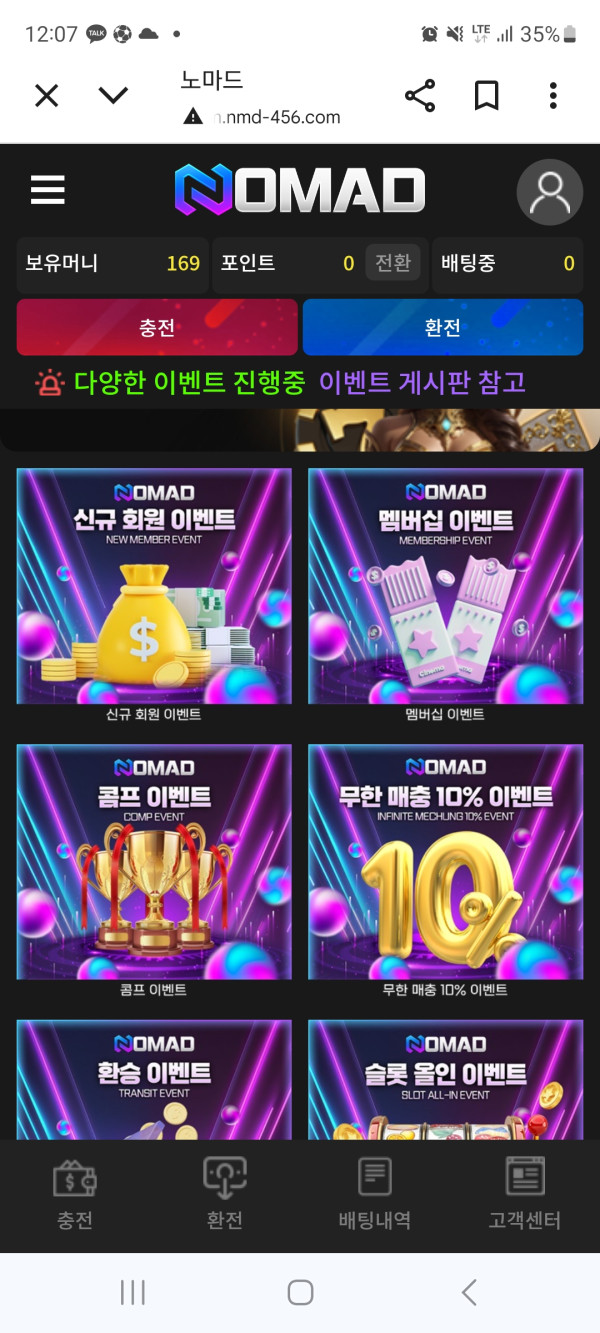 다양한 즐길거리와 이벤트가있는 노마드 현재저도 많이 즐기고있구요 충전환전 빚의 속도입니다 정말 빨리해주시고 매충이나 돌발이벤트등 다양한 이벤트들도 하고있어서 좋습니다 저는 계속 사이트만 서용할것 같네요 다들 한번식이라도 이용해보세요