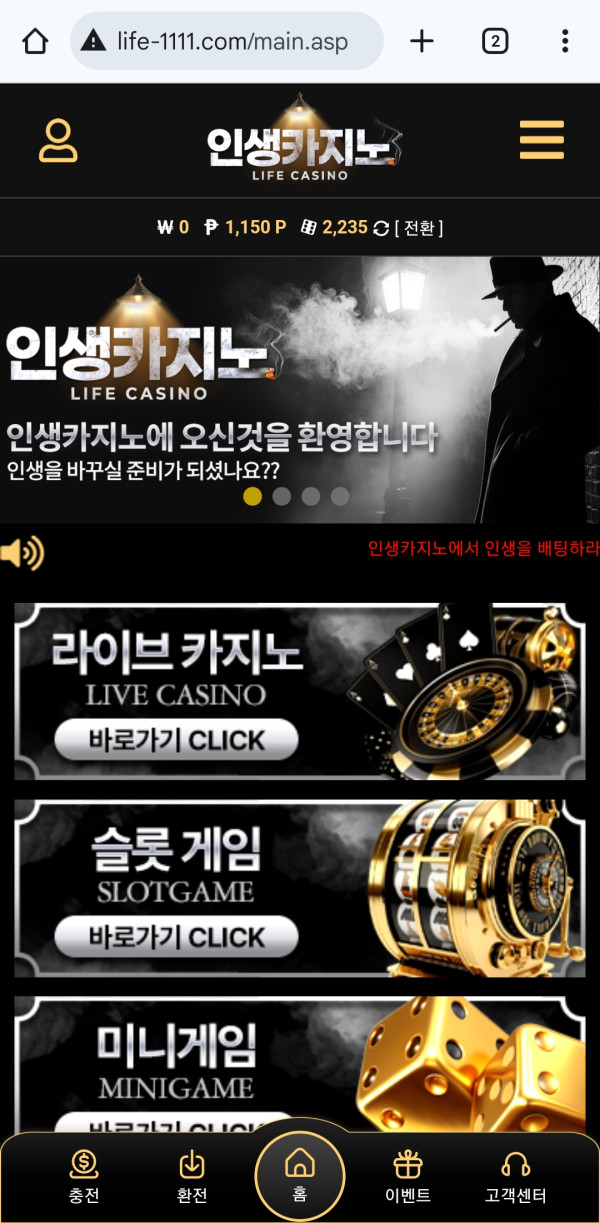 평소 커뮤니티 사이트에서 후기들도 틈틈히 읽어보고 보증업체들도 쭉 보면서 더 좋은 곳은 없을까 생각해왔습니다. 스크롤을 내리던중 상당히 심플한 배너를 하나 발견합니다. '인생 카지노' 떡하니 써있네요 ㅋㅋㅋ 궁금해진 저는 바로 클릭 후 들어가봅니다. 소개글 역시 심플하네요 ㅋㅋ 읽어보시면 아시겠지만 가입을 하게끔 하는 내용입니다.