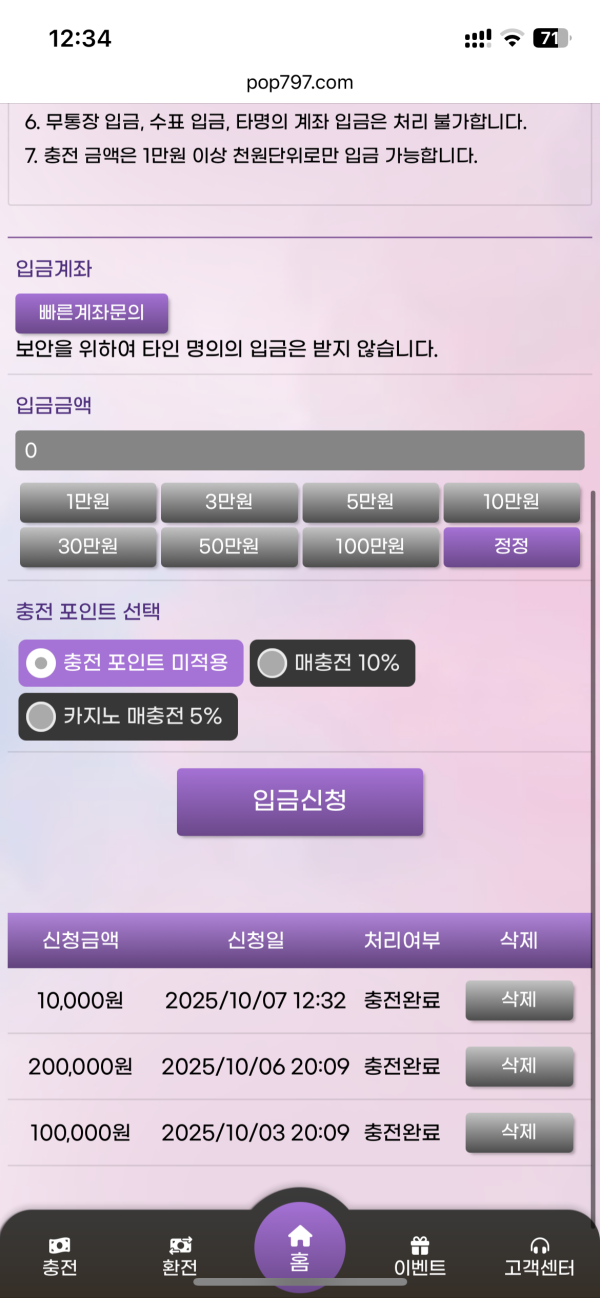 충환빠르고 안전합니다. 상담도 친절하고 이벤트도 다양해요 지금도 추석이벤트 다양하게 진행중입니다. 배당도 괜찮고 게임도 더양해서 더 이용할듯 싶어요 한번 이용해보세요!!!