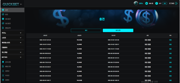 퀵벳의 장점은 빠른 충,환 속도와 깔끔한 인터페이스에요