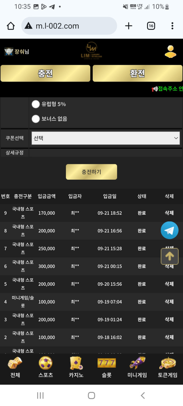 이끌리ㅁ 이란 곳 강추드립니다 사고일절없고 그리고무엇보다 충전자주하면포인트완전많이챙겨주네요 있을법한겜도다있고 결과처리도빠르고 롤링도그렇게 빡세지않아서 환전하기쉽네요 ㅎㅎ