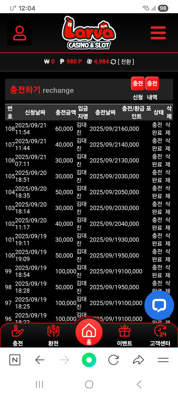 롤링도 100프로입니다 주말에는 2배 버닝 이벤트중이니 한번 이용해보시고 괜찮으면 지인추천도