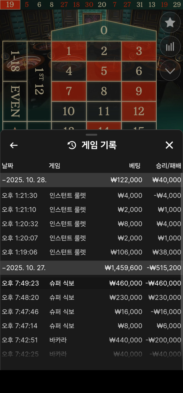 머지? 하고 베팅내역보니 베팅 실수했는데