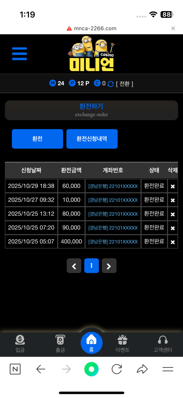미니언 후기 보통 진또배기들은 한사이트만 이용합니다 그게저구요 타사이트 2년넘게 이용 했는대 왜계속 그사이트만 이용했는지 아시나요 잃은게 많아서 그렇습니다 근대 미니언 이용해보니깐 4대가 잘맞습니다 이용한지 얼마안됬지만 오래 이용할생각이고 형들도 한번이용해보세요 진짜 괜찮아요