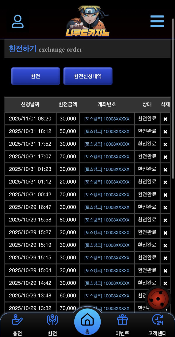 신규가입 이벤트도 항상 진행중이던데 고민이신분들은 나루토 추천이용!!