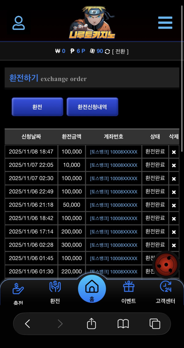 나루토후기입니다!! 몇년째 사고없이 잘이용중인곳입니다!! 처음에 커뮤니티 휴기보고 가입했는데 여기 이용하길 잘했네요!!매주 진행하는 이벤트도 많고 충환전 빠른게 제일 만족스럽네요ㅎㅎ