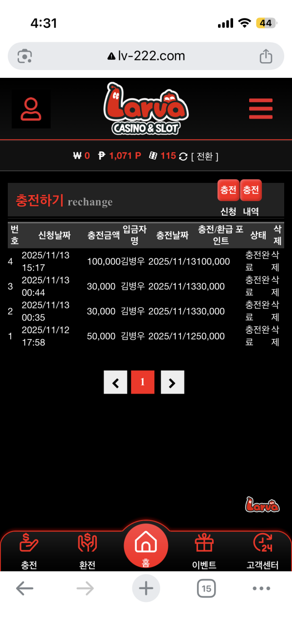 몇개월 만에 다시 정착하려고 합니다. 환전 충전 속도 모두 탁월하고 특히 텔레그램 고객센터,케어팀 여러가지 이벤트와 손실시에 적절한 위로금 지급이 가장 강점인 것 같습니다. 앞으로도 꾸준이 이용할 사이트 입니다 강추드릴게요!
