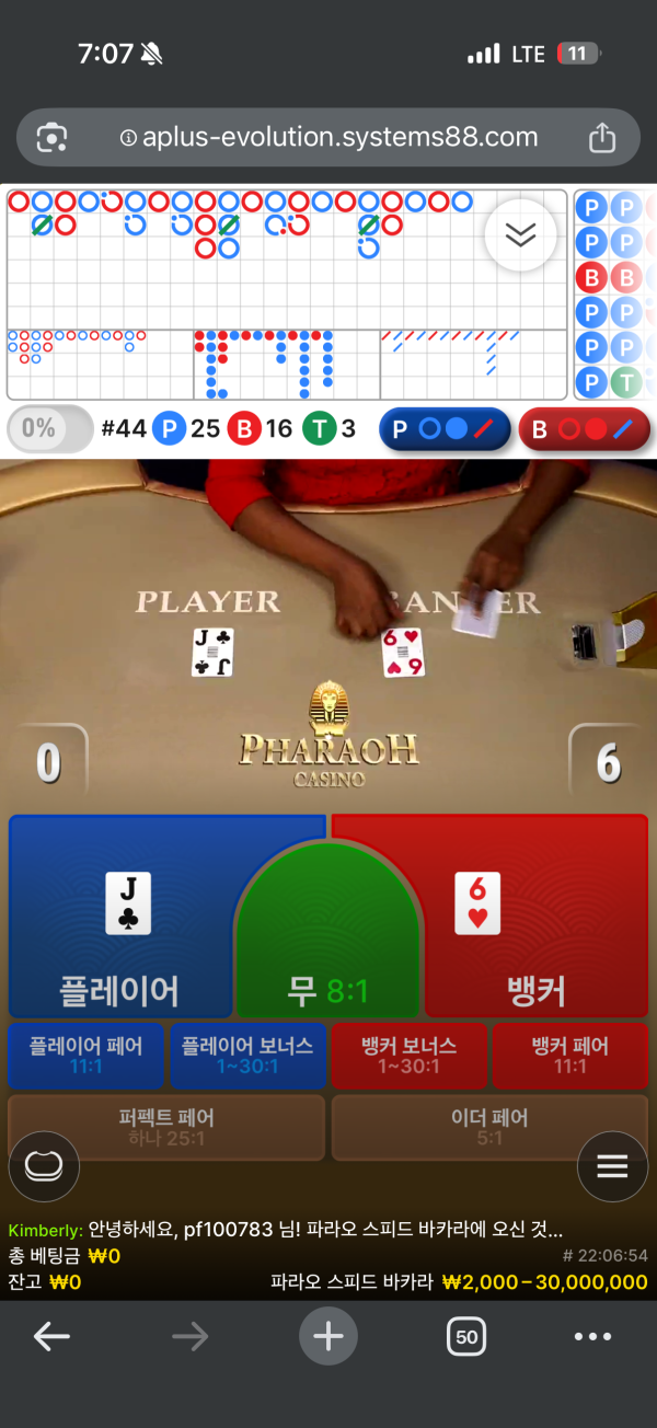 속도나 진행 흐름은 여전히 괜찮은 편입니다. 파라오 스피드 바카라는 말 그대로 템포가 빠르다 보니 괜히 지루하게 기다릴 필요가 없어서 자주 찾게 되네요. 딜러들도 대체로 무난하고, 크게 딜레이 걸리거나 불편한 부분은 없었습니다.